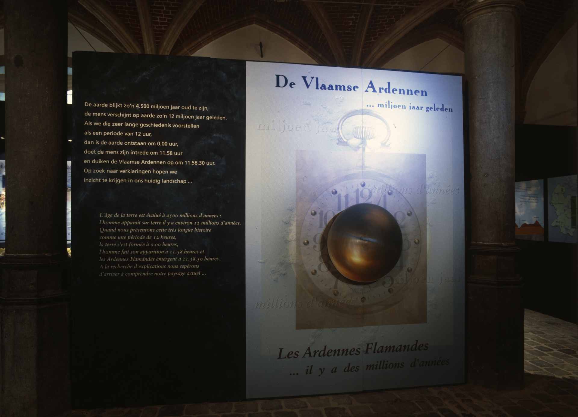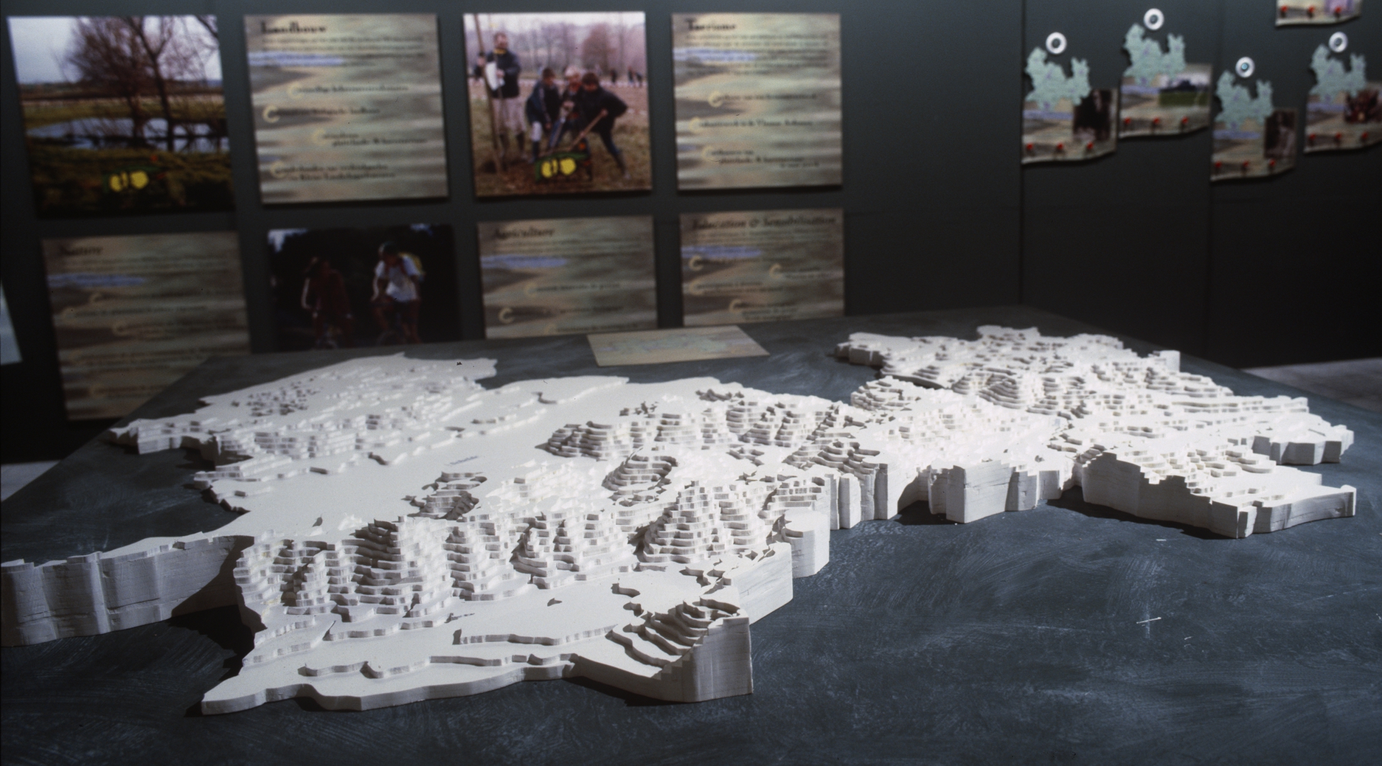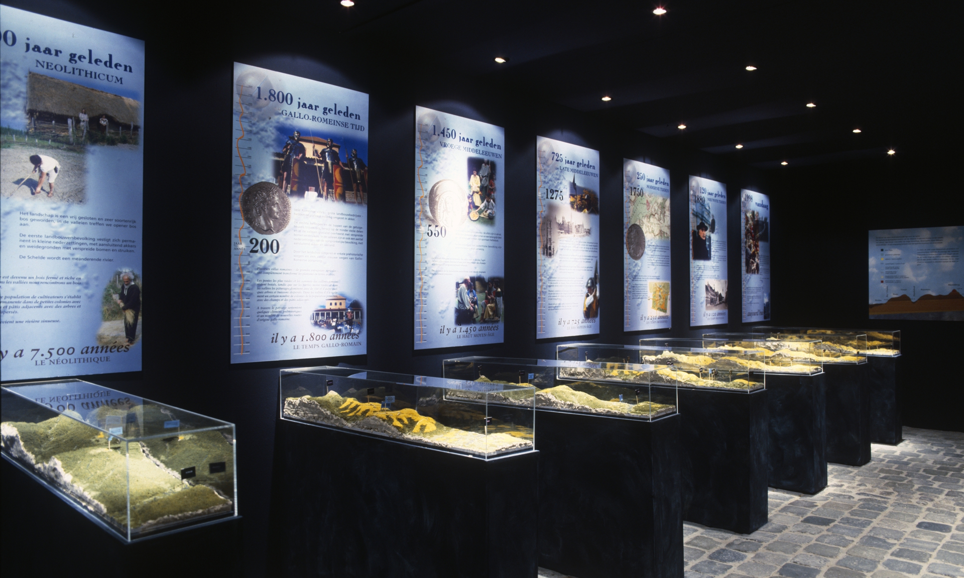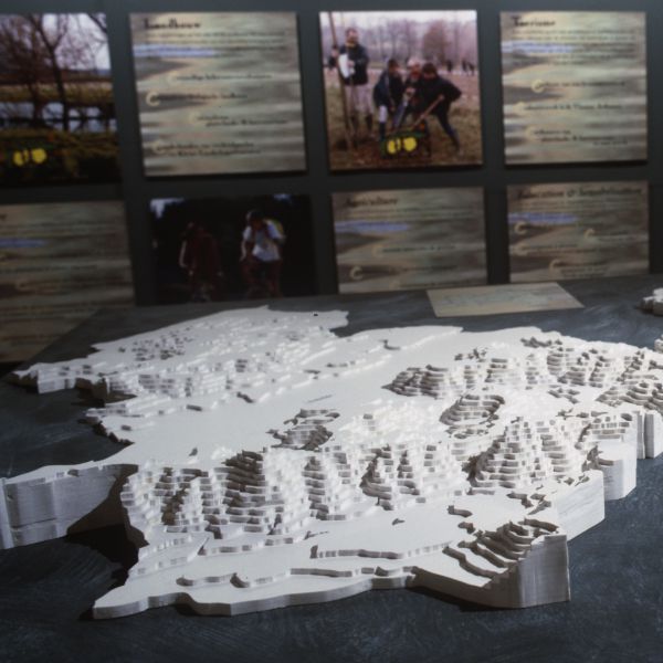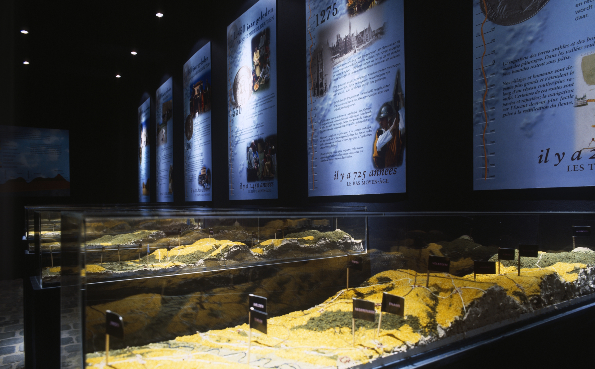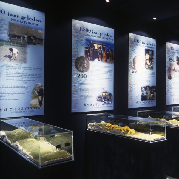 In een thematentoonstelling besteden wij aandacht aan de eeuwenlange wisselwerking tussen natuur en menselijke activiteit. Acht tijdsopnamen - een grafische interpretatie met reliëfmaquettes - tonen hoe het landschap in ca. 10.000 jaar grondig veranderde.