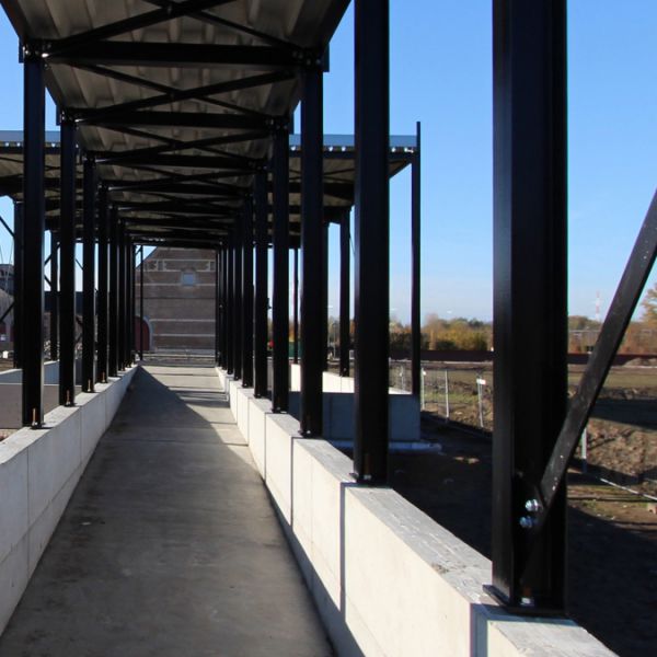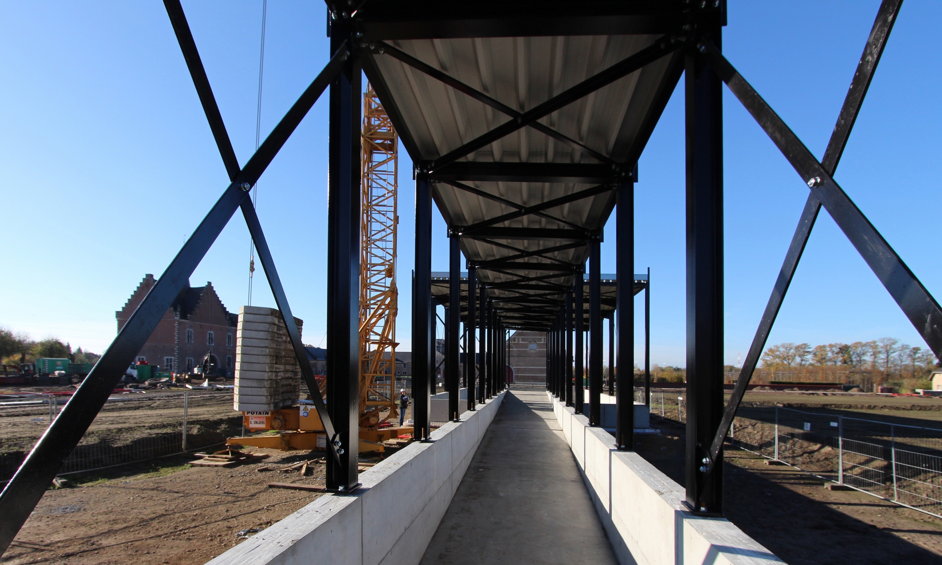 Samen met ons professioneel team van architecten en ingenieurs bepaalden we alle aspecten van stabiliteit en architectuur: de constructie van de bovenbouw bestaat uit een staalstructuur die gefundeerd wordt op een betonnen massieve kuip om de archeologische ondergrond te beschermen.